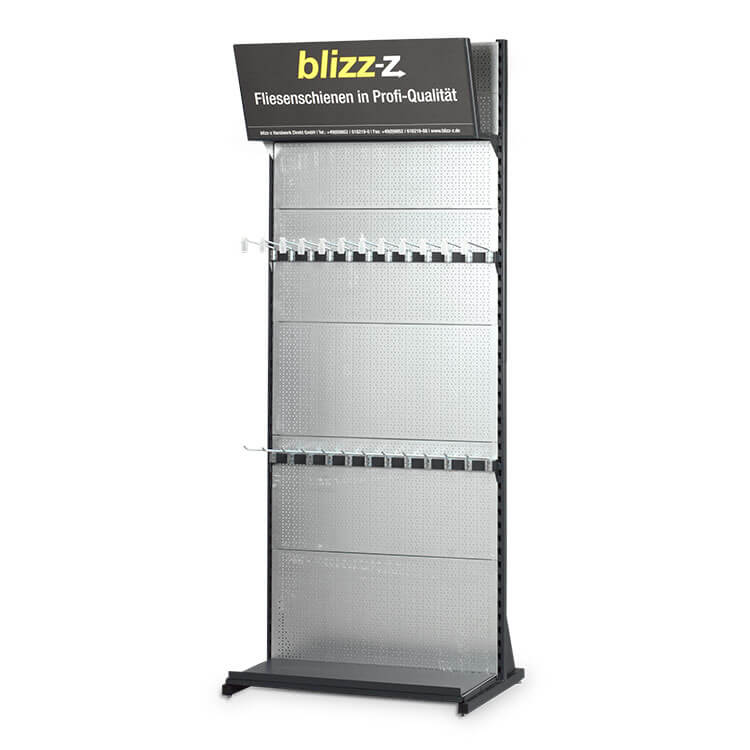 Das Schienenregal von blizz-z sorgt für perfekte Ordnung und eine professionelle Präsentation deiner Fliesenschienen – ideal für Lager und Showroom.
